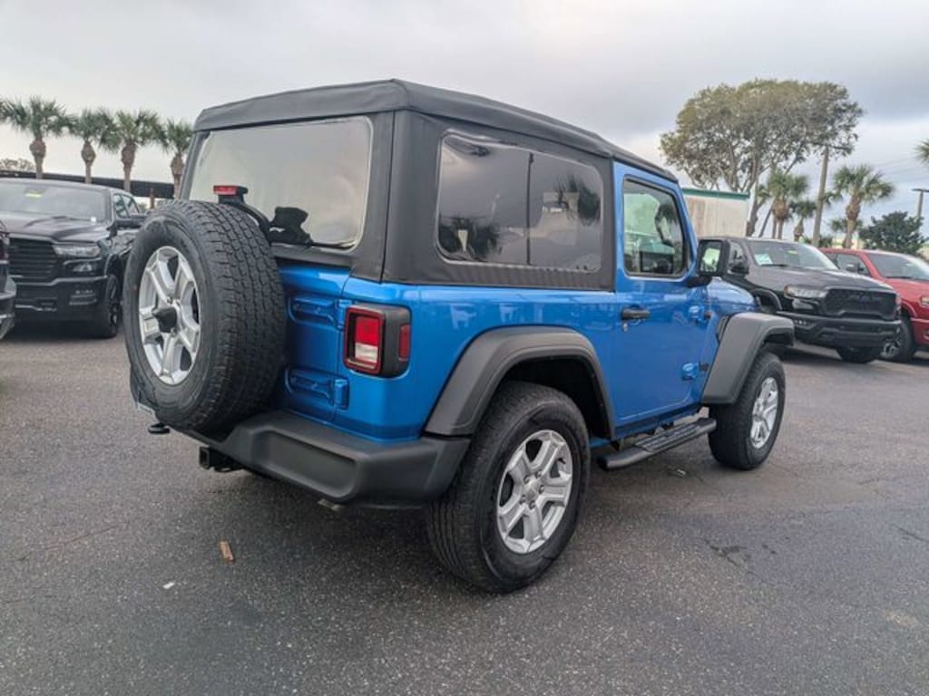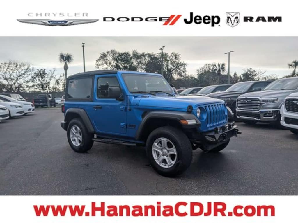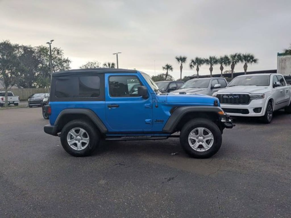 Wrangler Sport S, 2D Sport Utility, 2.0L I4 DOHC, 8-Speed Automatic, 4WD, Hydro Blue Pearl Coat, Black Cloth, **EXTRA CLEAN**, PRICE REFLECTS $1000 DISCOUNT FOR IN HOUSE FINANCING, PRICE REFLECTS $1500 DISCOUNT FOR TRADE ASSISTANCE, Wrangler Sport S, 2D Sport Utility, 2.0L I4 DOHC, 8-Speed Automatic, 4WD, Hydro Blue Pearl Coat, Black Cloth, 7.0" Touchscreen Display, Air Conditioning, Apple CarPlay, Automatic Headlamps, Deep Tint Sunscreen Windows, Front 1-Touch Down Power Windows, Global Telematics Box Module (TBM), Google Android Auto, GPS Antenna Input, Integrated Center Stack Radio, Integrated Voice Command w/Bluetooth, Leather Wrapped Steering Wheel, Power Heated Mirrors, Quick Order Package 22S Sport S, R1234YF A/C Refrigerant, Radio: Uconnect 4 w/7" Display, Remote Keyless Entry, Security Alarm, SiriusXM Guardian-Included Trial (B), Speed Sensitive Power Locks, Sport S, Sun Visors w/Illuminated Vanity Mirrors, USB Host Flip, Wheels: 17" x 7.5" Tech Silver Aluminum, 3.45 Overall Top Gear Ratio, 4-Wheel Disc Brakes, 8 Speakers, ABS brakes, Air Conditioning w/Auto Temperature Control, Air Filtering, AM/FM radio, Auxiliary Battery, Brake assist, Cloth Low-Back Bucket Seats, Cluster 7.0" TFT Color Display, Compass, Delay-off headlights, Driver door bin, Driver vanity mirror, Dual front impact airbags, Dual front side impact airbags, Electronic Stability Control, Emergency communication system: SiriusXM Guardian, Engine Oil Cooler, For More Info, Call 800-643-2112, Front anti-roll bar, Front Bucket Seats, Front Center Armrest w/Storage, Front Door Locks 2-Door Passive Entry, Front fog lights, Front reading lights, Integrated roll-over protection, Low tire pressure warning, MOPAR All-Weather Floor Mats, Non-Locking Fuel Cap w/o Discriminator, Normal Duty Suspension, Occupant sensing airbag, Outside temperature display, ParkView Rear Back-Up Camera, Passenger door bin, Passenger vanity mirror, Power steering, Radio data system, Radio: Uconnect 3 w/5" Display, Rear anti-roll bar, Rear reading lights, SiriusXM Radio Service, SiriusXM Satellite Radio, Speed control, Start-Stop Dual Battery System, Steering wheel mounted audio controls, Tachometer, Technology Group, Telescoping steering wheel, Tilt steering wheel, Traction control, Trip computer, Variably intermittent wipers, Wheels: 17" x 7.5" Black Steel Styled, READY FOR SUMMER!!!!, PERFECT FOR THE BEACH, 7.0" Touchscreen Display, Air Conditioning, Apple CarPlay, Automatic Headlamps, Deep Tint Sunscreen Windows, Front 1-Touch Down Power Windows, Global Telematics Box Module (TBM), Google Android Auto, GPS Antenna Input, Integrated Center Stack Radio, Integrated Voice Command w/Bluetooth, Leather Wrapped Steering Wheel, Power Heated Mirrors, Quick Order Package 22S Sport S, R1234YF A/C Refrigerant, Radio: Uconnect 4 w/7" Display, Remote Keyless Entry, Security Alarm, SiriusXM Guardian-Included Trial (B), Speed Sensitive Power Locks, Sport S, Sun Visors w/Illuminated Vanity Mirrors, USB Host Flip, Wheels: 17" x 7.5" Tech Silver Aluminum.